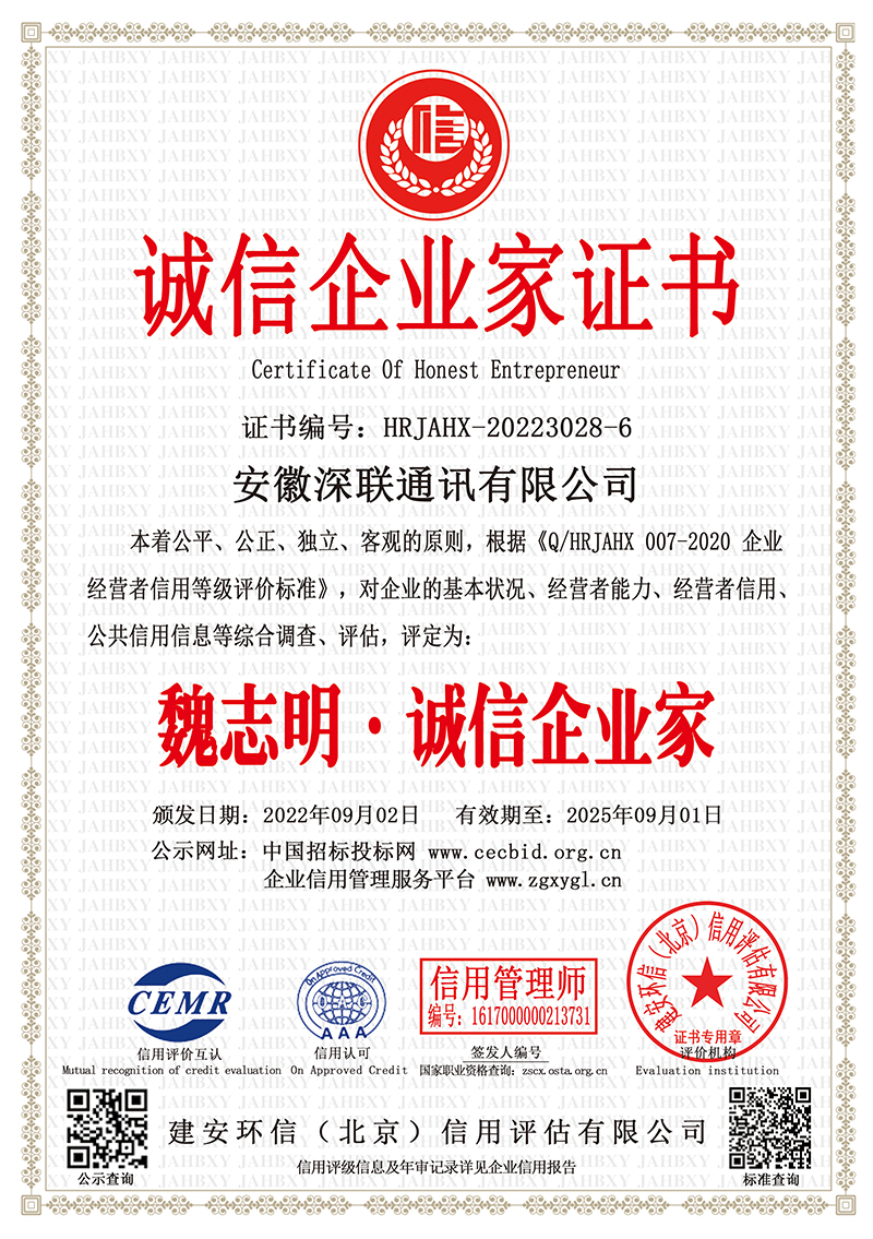 3A级诚信企业家证书