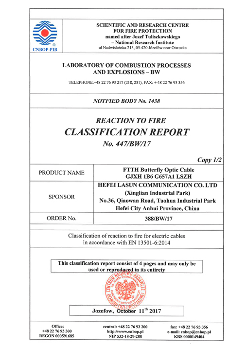 合肥兴联通讯有限公司光缆GJXH蝶形光缆CPR证书